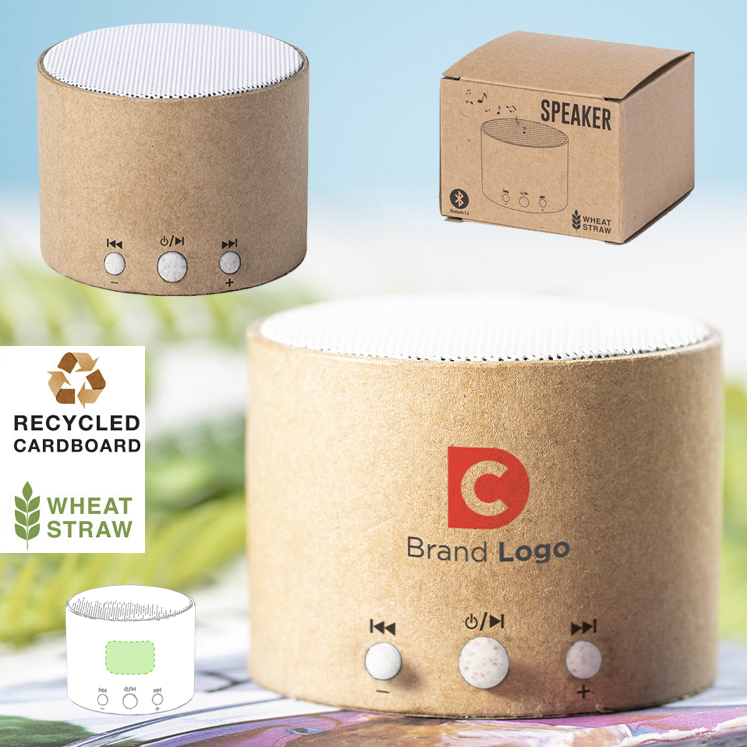 Compacto altavoz de línea nature y conexión Bluetooth® 5.0. Frabricado en cartón reciclado, contribuyendo a la conservación de los bosques y reduciendo considerablemente la huella de carbono, con botones de control en caña de trigo. Ofrece 3W de potencia, compatible con iOS y Android. Incluye cable de carga micro USB. Presentado en atractiva caja de diseño eco, con manual de instrucciones en español e inglés. Conexión Bluetooth. Potencia Sonido 3W. Batería 300 mAh