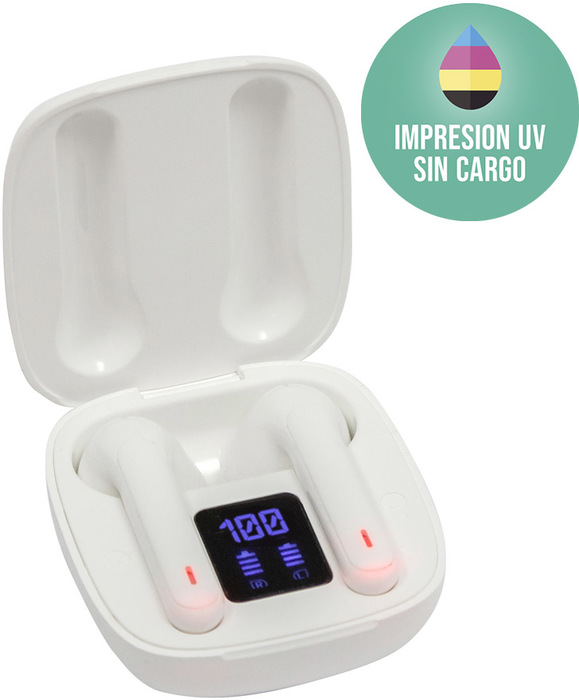 5,5 cm x 5 cm x 2,5 cm. (medida de la caja) 45 mm (auriculares). Plástico ABS. Auriculares bluetooth con imán, se conectan al celular de forma inalámbrica. Los auriculares cuentan con función touch en cada costado de los audifonos (izquierdo y derecho) para funciones de encendido, apagado, avance, retroceso, reproducción y pausar musica. Así como también para las funciones de responder, rechazar o finalizar una llamada. Estuche que permite cargar la batería de los auriculares. Indicador de batería del estuche. Base de carga 300 MAH . Auriculares: 30mAh Bluetooth V5.0. Rango de alcance 10 metros. Tiempo de reproduccion autónomo 3 horas aprox. Tiempo de carga de la batería 1 hora. Cable de carga USB tipo C. Duración de la batería en modo stand by: 40 hs. Presentación en caja de regalo.