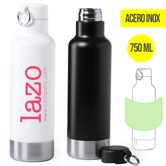 Bidón en alta calidad y de gran capacidad -750 ml-. En acero inox, con tapón a juego y anilla de transporte. Base en elegante acabado inox y disponible en elegantes colores blanco y negro. Presentado en atractiva caja de diseño 750 ml