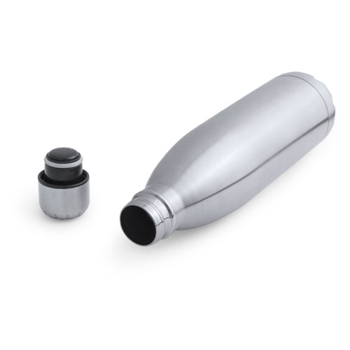 Botella térmica de acero inox de 850ml de capacidad en acabado brillante. Con tapón de seguridad y presentada en atractiva caja de diseño. 850 ml