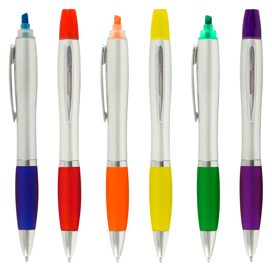 Bolígrafo Promocional "Wind Satin" con Destacador. Escritura Azul.