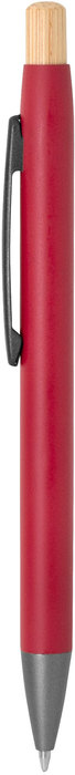 Bolígrafo retráctil. Cuerpo metálico en diferentes colores acabado mate. Clip metálico, puntera plástica color gris y pulsador de bambú.