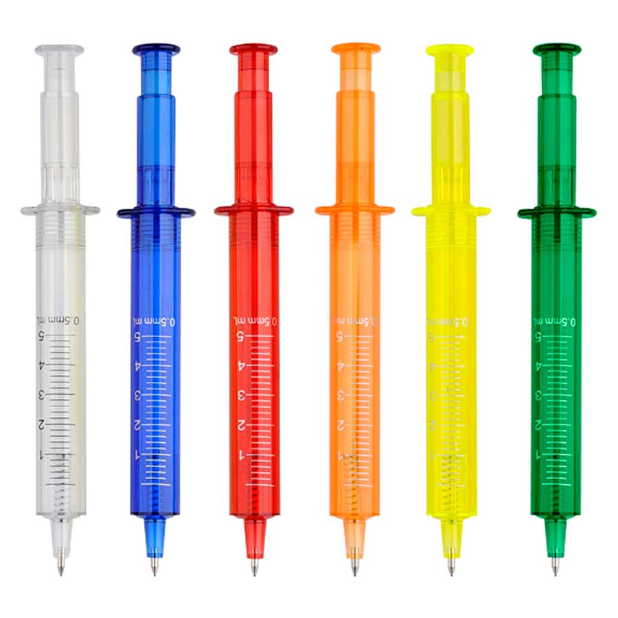 Bolígrafo plástico promocional "Jeringa". Escritura Azul.
