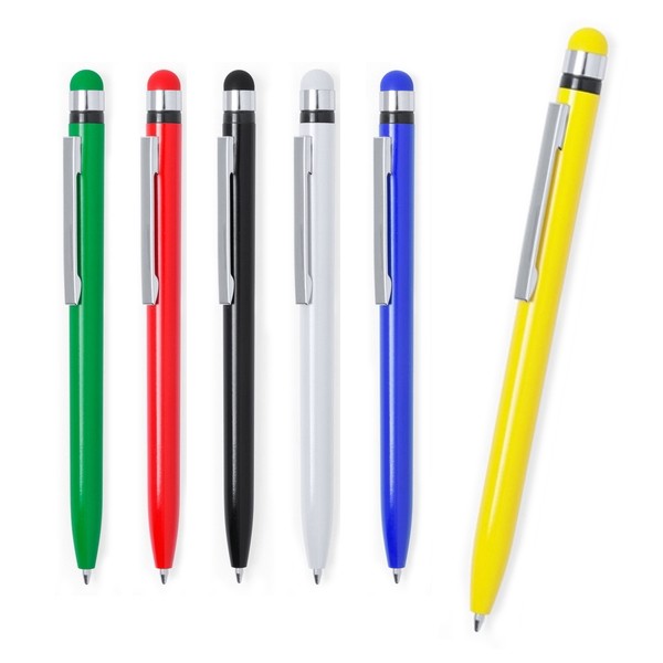 Bolígrafo puntero de mecanismo giratorio en desenfadados colores, con puntero a juego. Acabado liso especialmente diseñado para marcaje en tampografía y tinta azul.