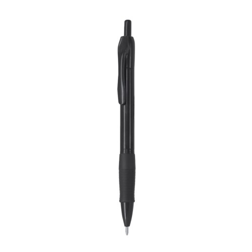 Bolígrafo de mecanismo pulsador y empuñadura disponible acabado gomoso. Fabricado en ABS de tinta negra. Tinta Negra