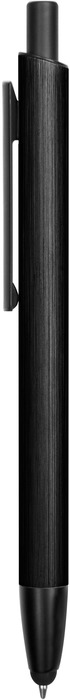 Aluminio. Cuerpo metálico. Clip, punta y pulsador plásticos. Punta touch. Tinta azul.