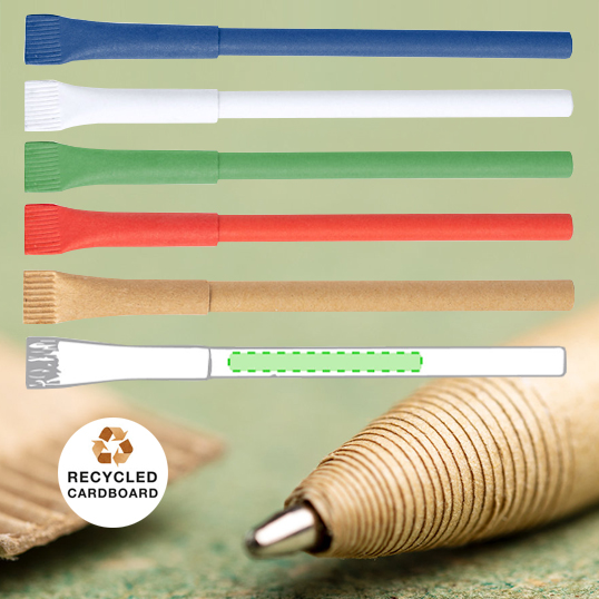 Bolígrafo de línea nature en cartón reciclado y original capucha a juego. Con tinta azul y disponible en variada gama de colores nature.