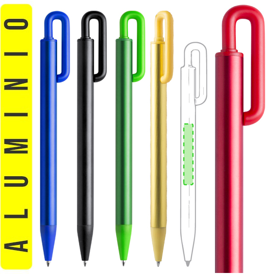 Bolígrafo con cuerpo acabado en aluminio de colores brillantes. Con original clip curvado y punta a juego, de acabado mate. Cartucho jumbo y tinta azul. Carga Jumbo