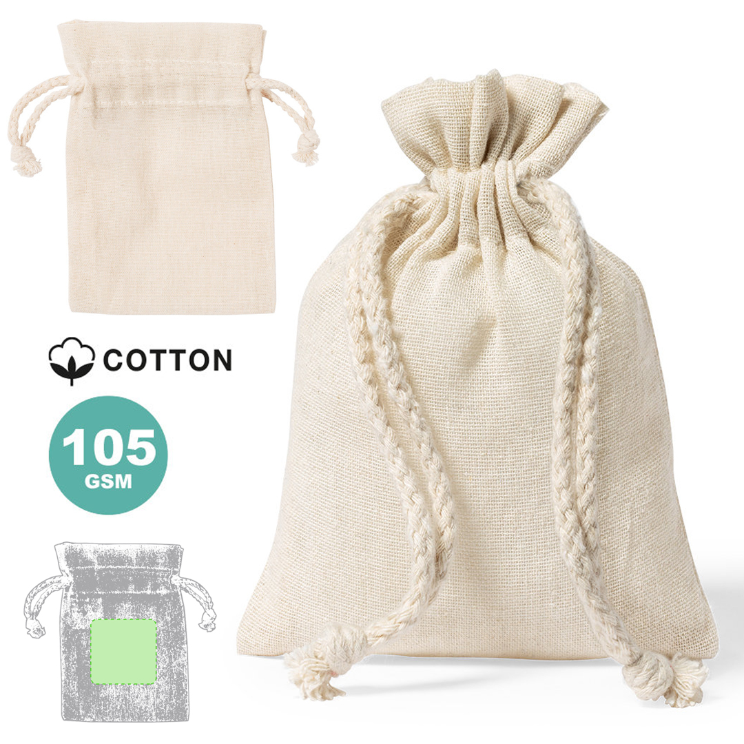 Bolsita de línea nature y tamaño 10x14 cm. Con cierre de cordón y fabricada en material 100% algodón de 105g/m2. Fácil marcaje y especialmente diseñada para pequeños objetos.