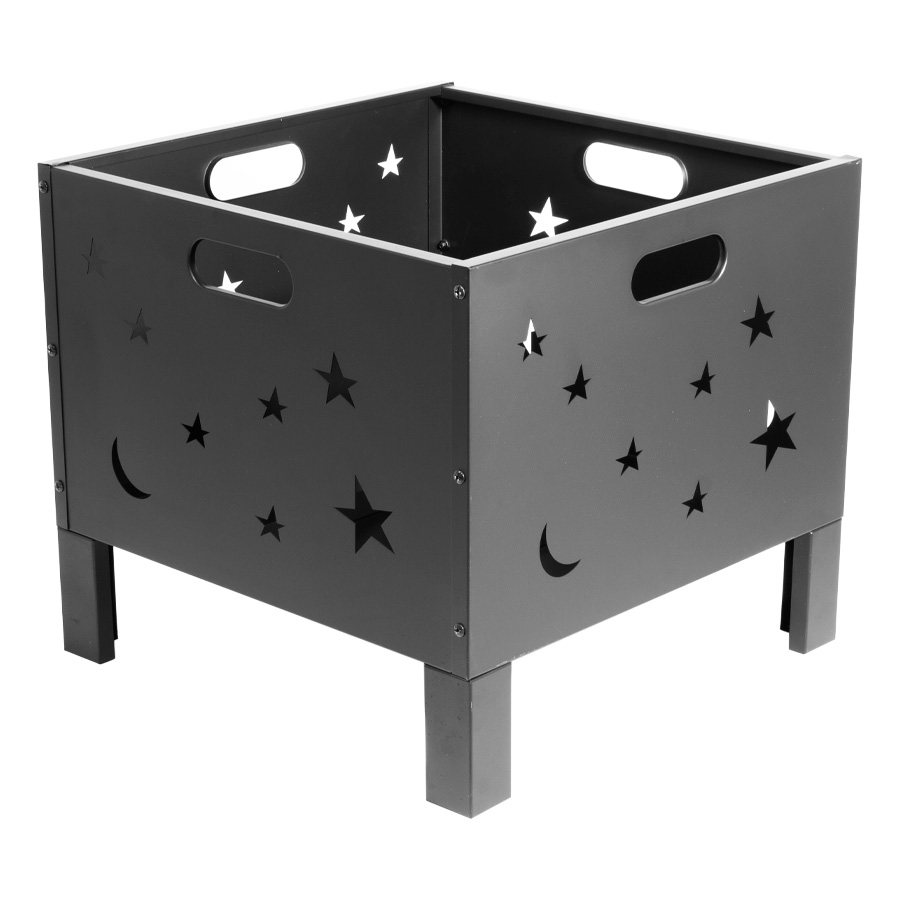 Brasero para Leña o Carbón, de Acero negro, modelo "Constelación". Bowl para fuego: 50 x 50 x 33cm x 10.6mm. Fácil de armar y transportar. Incluye Manual instructivo de armado en español.