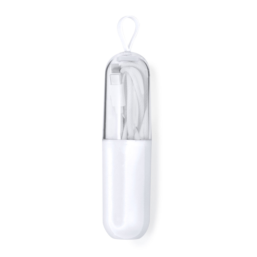 Cable cargador con conexión dual Tipo C. De 65W de potencia y apto para transferir datos. 100cm de longitud, con conectores de aluminio y presentado en atractivo estuche con una parte transparente y otra opaca. Con asa de transporte y presentado individualmente en bolsa reciclada. Apto para transferir datos. Conexión Tipo C PD 65W