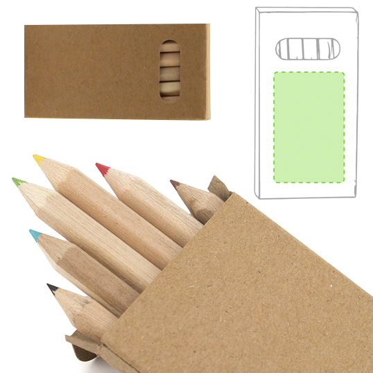 Set de 6 lápices en caja de cartón natural con ventana. Lápices de madera con cuerpo hexagonal de acabado natural y minas en variada gama de colores. 6 Lápices