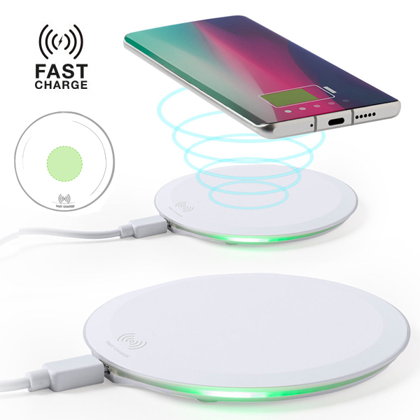 Cargador inalámbrico circular, con función carga rápida de 10W. Base antideslizante e indicador LED de estado de carga. Cable micro USB incluido y compatible con smartphones con tecnología de carga inalámbrica. Presentado en atractiva caja de diseño. Inalámbrico 10W