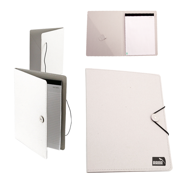 Carpeta con original cierre elástico en resistente cartón reciclado de acabado rígido con costuras de refuerzo. Interior con bloc extraíble de 20 hojas con distribución a una raya, bolsillo triangular de solapa y soporte para bolígrafo. Bloc 20 Hojas