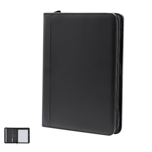 Elegante Carpeta con cremallera en PU reciclado. Con 4 compartimentos interiores en PU Reciclada y soporte para bolígrafo. Incluye bloc de notas de 25 páginas en blanco. Bloc 25 Hojas