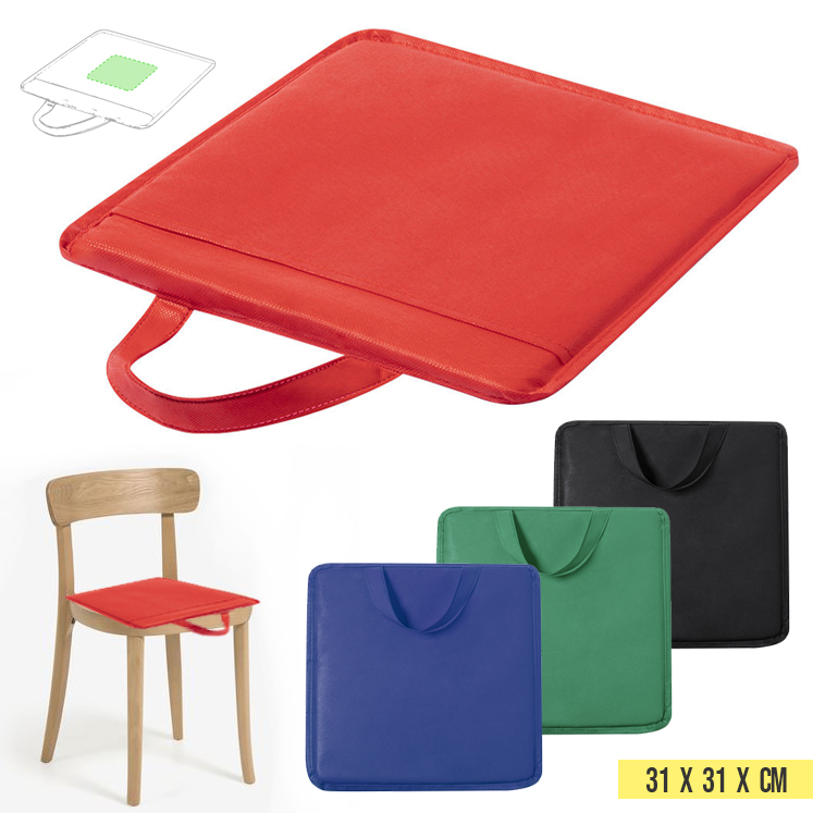 Cojín fabricado en resistente non-woven, con acolchado grueso, asa de transporte y bolsillo para marcaje. Disponible en variada gama de colores. Acolchado