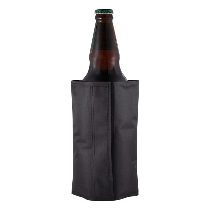 35 x 17,5 x 0,5 cm. Poliéster + PVC + gel enfriante. Peso 270 g. Cooler/enfriador de Botellas. Interior con relleno de gel.