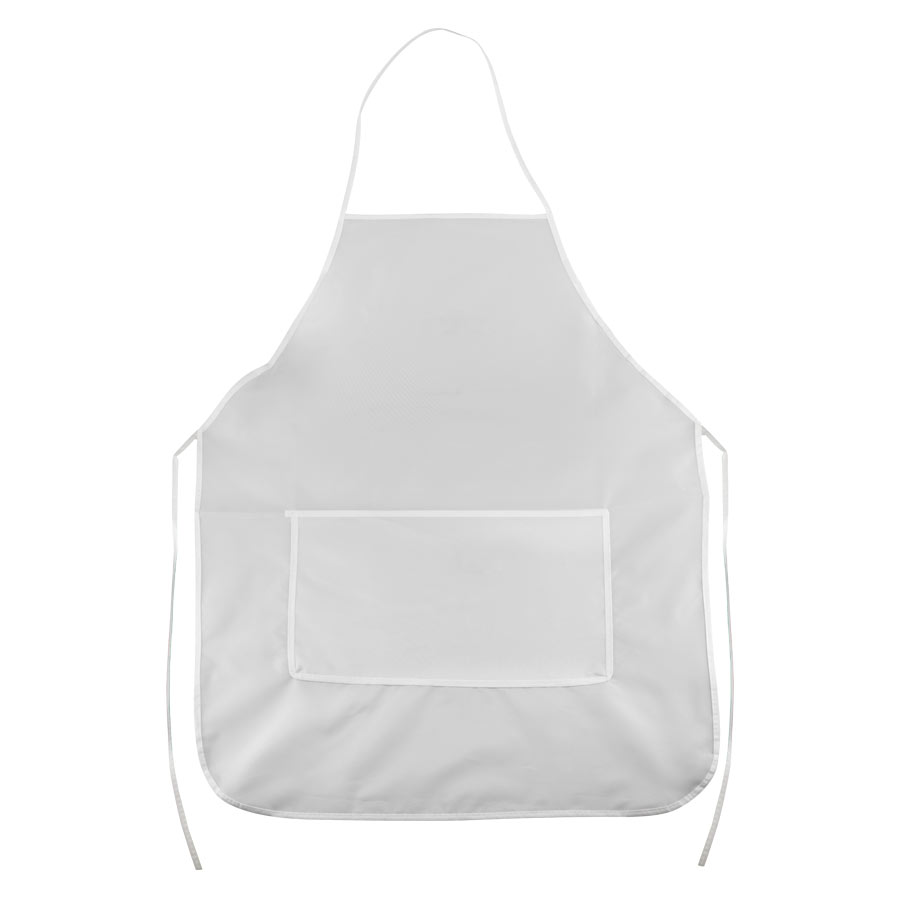 Delantal-Pechera de Cocina en tela Poliéster 210D/PU y borde costurado en tela ecológica PET nonwoven 80g. Incluye bolsillo delantero grande. Ideal para Sublimación. Producto Lavable.