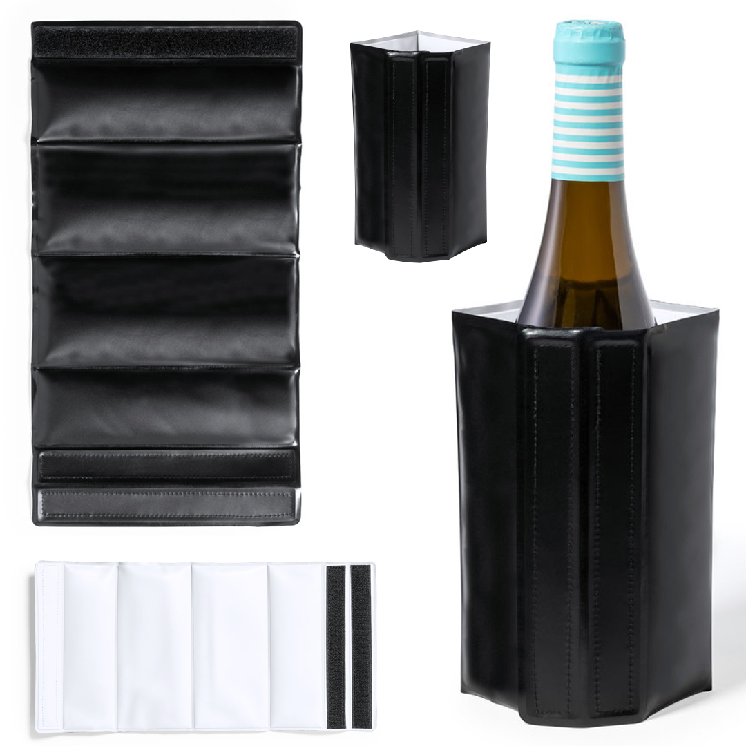 Enfriador con cierre ajustable de velcro, líquido refrigerante interior y fabricado en PVC negro mate.
