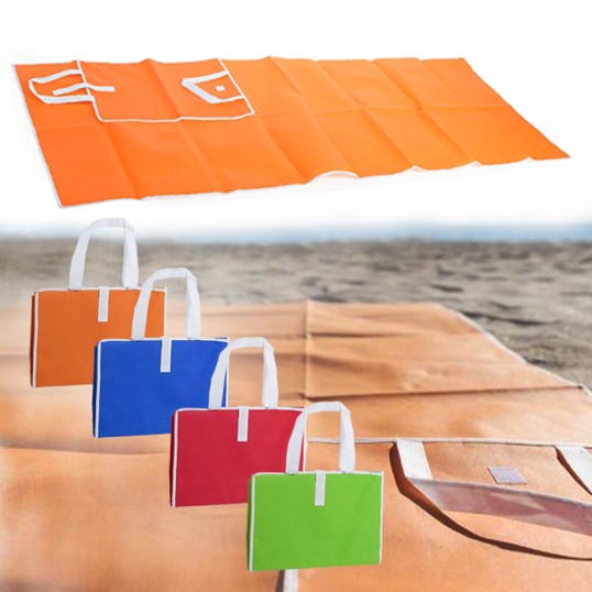 Esterilla plegable tamaño maxi de 180x70cm en resistente material non-woven laminado en variada gama de vivos colores brillantes. Con cierre de velcro y cintas de transporte para hombro.