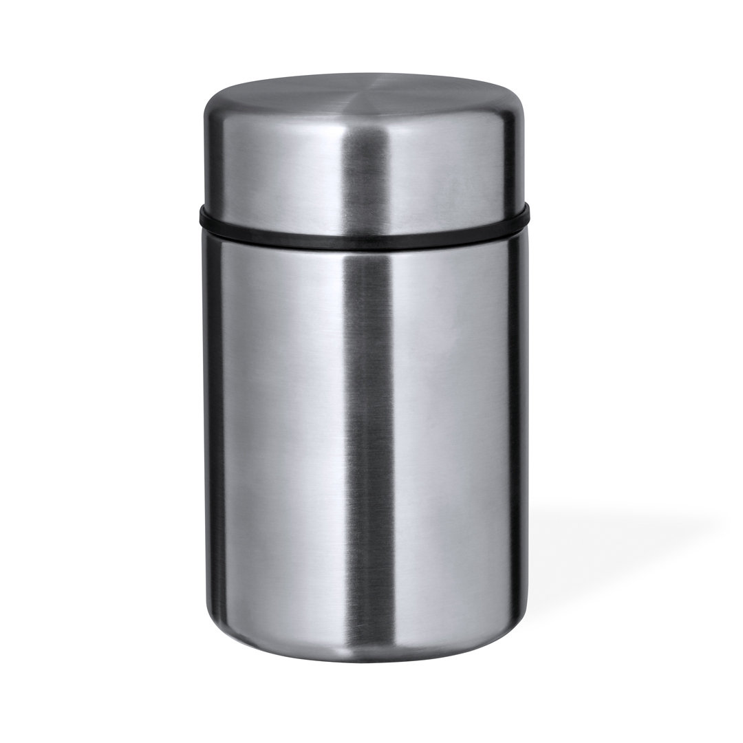 Fiambrera de doble pared, fabricada en acero inox y de 600 ml de capacidad. Cierre de seguridad con tapadera estanca de rosca en acero inox. Disponible en varios colores y presentada en atractiva caja individual de diseño. 600 ml