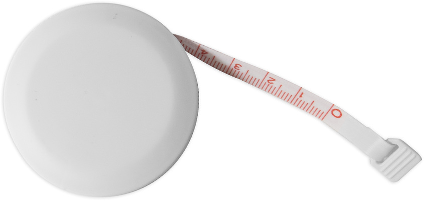 Ø 5 cm. huincha métrica de 1,5 m. Plástico. con botón de bloqueo que permite marcar medida y liberar cinta. Escala de medida en cm y pulgadas.