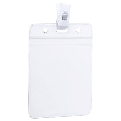 Identificador troquelado en PVC con clip de fijación en color blanco. Disponible en diseño horizontal y vertical.