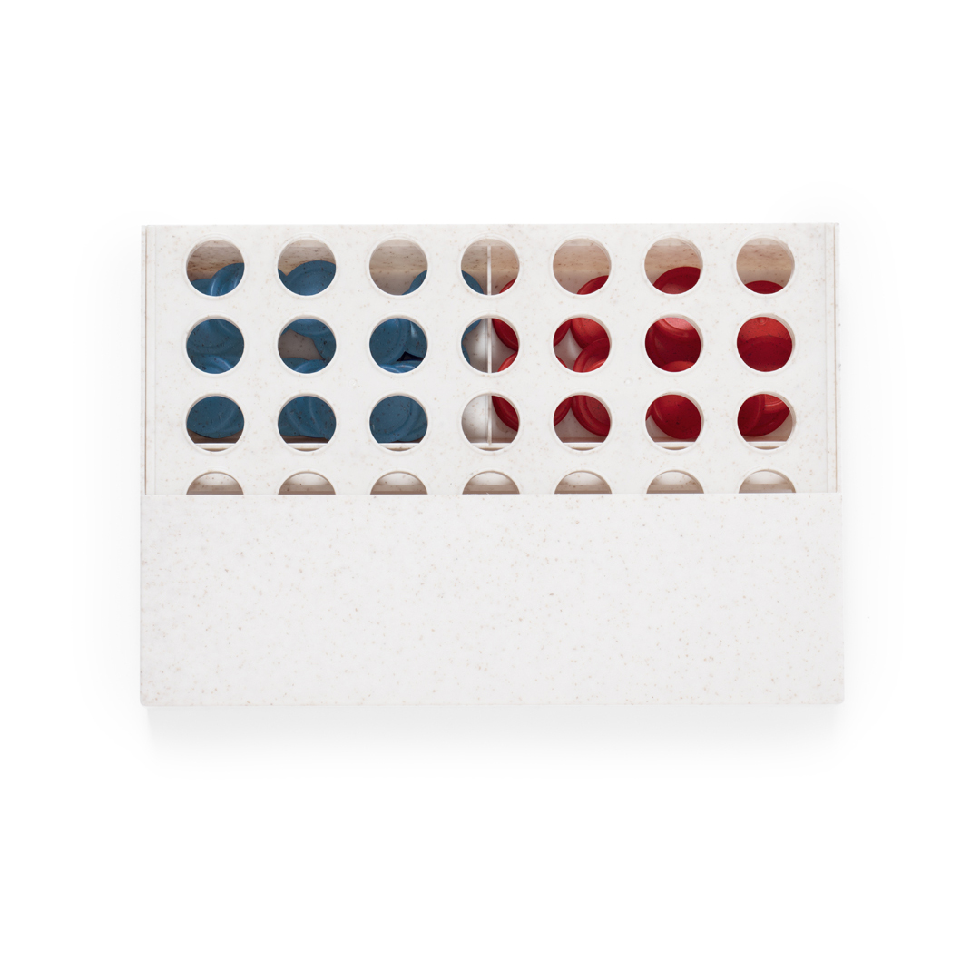 Divertido juego de mesa fabricado en caña de trigo. Compuesto por un tablero vertical y 42 piezas circulares (21 rojas y 21 azules). Emoción para todas las edades introduciendo las fichas por las ranuras para conseguir 4 fichas en 1 misma fila. Fácil de montar por su tablero móvil pudiendo desplegar o plegar. Presentado en caja de diseño kraft. 42 Piezas