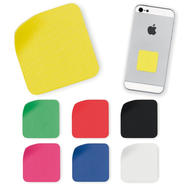 Limpiador de pantalla de suave microfibra de diseño minimalista, en desenfadados colores y con parte trasera adherente. Adherente