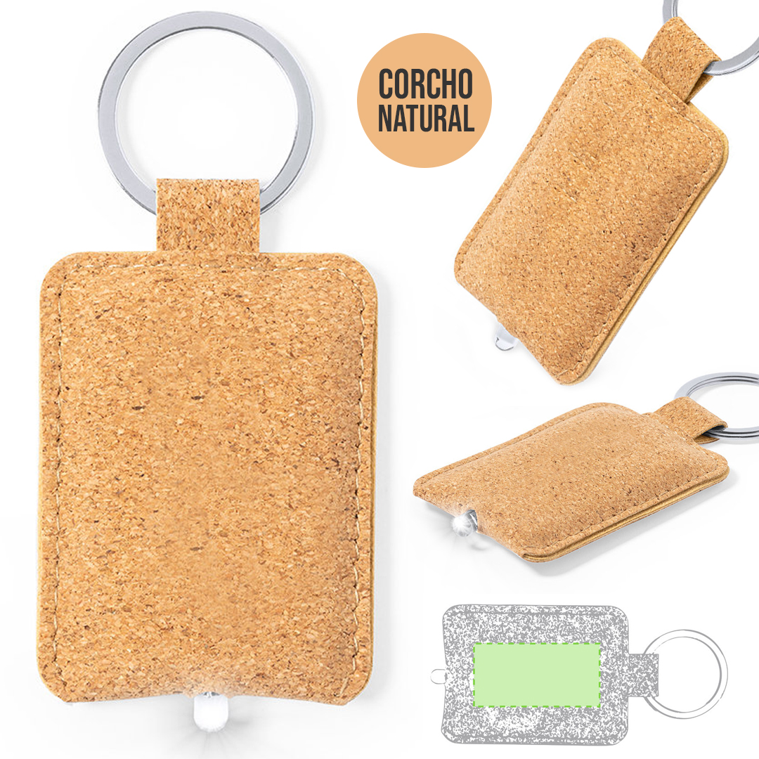 Llavero linterna de línea nature fabricado en corcho natural. Con luz led que se activa presionando el cuerpo del llavero. Con amplia superficie de marcaje y alimentación a pilas (de botón incluidas). 1 Led. Pilas Botón Incluidas