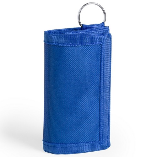 Llavero monedero en resistente poliéster 600D de vivos colores y cierre de velcro. Interior con monedero de cierre de cremallera, compartimento para tarjeta y anilla llavero.