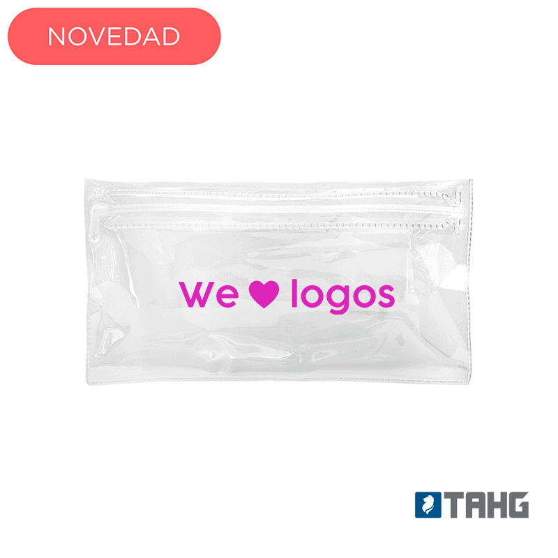Neceser transparente con cierre, ideal para organizar y transportar fácilmente tus objetos personales.