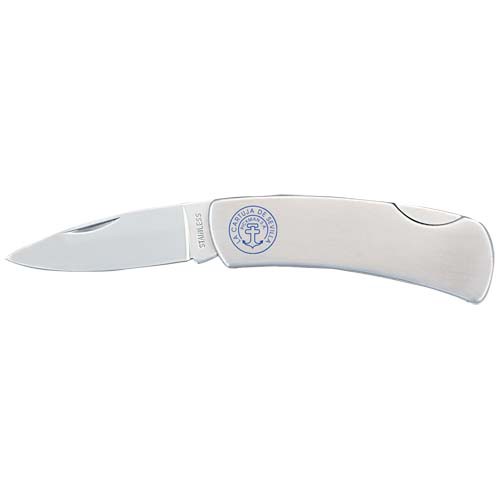 Navaja en acero inox con bloqueo de seguridad y presentada en caja individual. Con Bloqueo