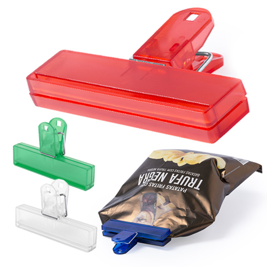 Pinza para cierre en variada gama de vivos colores translúcidos. Con troquelado para colgar.
