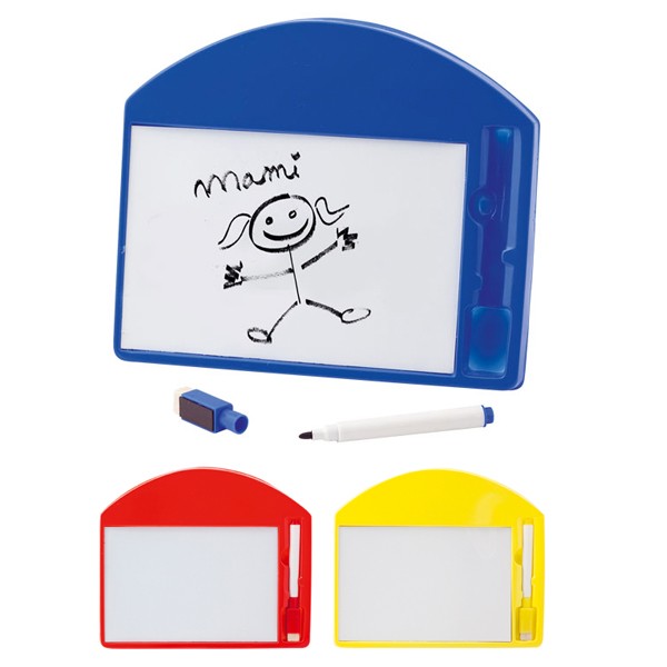 Pizarra en variada gama de vivos colores. Con troquelado para rotulador en marco (rotulador magnético a juego con borrador incluido). Rotulador y Borrador Incluidos