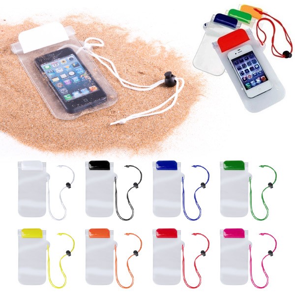Prático portatodo impermeable en PVC con función táctil y doble sistema de seguridad para preservar la estanqueidad. Con zona de marcaje frontal a juego con el cordón de transporte -con accesorio de ajuste-. Impermeable. Pantalla Táctil