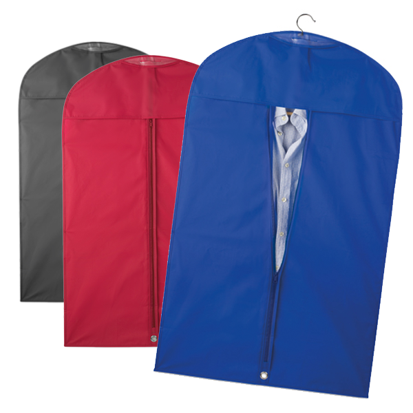 Portatrajes en suave material PEVA de variados colores. Con cierre de cremallera a juego y argolla metálica reforzada para percha.