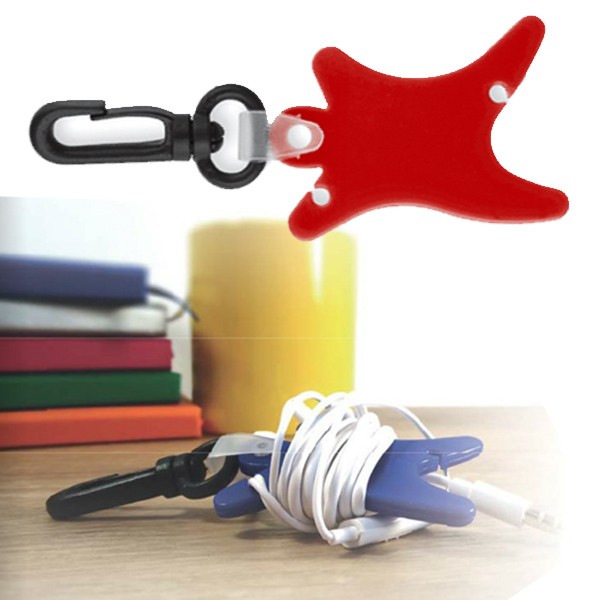 Práctico llavero recoge cables con cierre de mosquetón y cuerpo de suave acabado en llamativos colores. Especialmente diseñado para marcaje en tampografía.