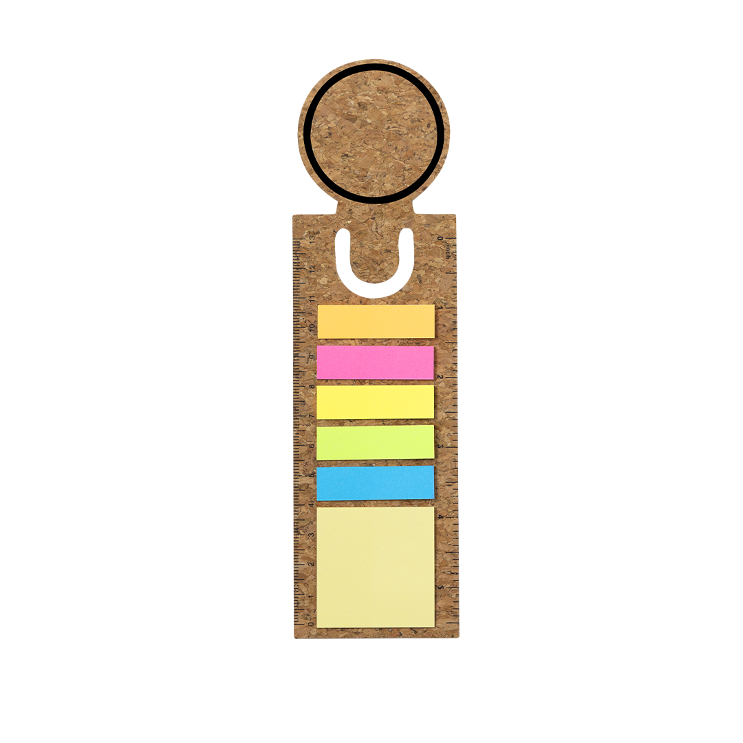 Regla marcapáginas de corcho con notas adhesivas. Incluye 90 notas adhesivas en variados colores y tamaños.Elaborado con elementos vegetales para así fomentar la utilización de materias primas naturales y reducir las emisiones contaminantes. 13 cm y 5". 15 Notas Adhesivas 4 x 4,5 cm. 75 Mininotas Adhesivas 1,2 x 4,5 cm