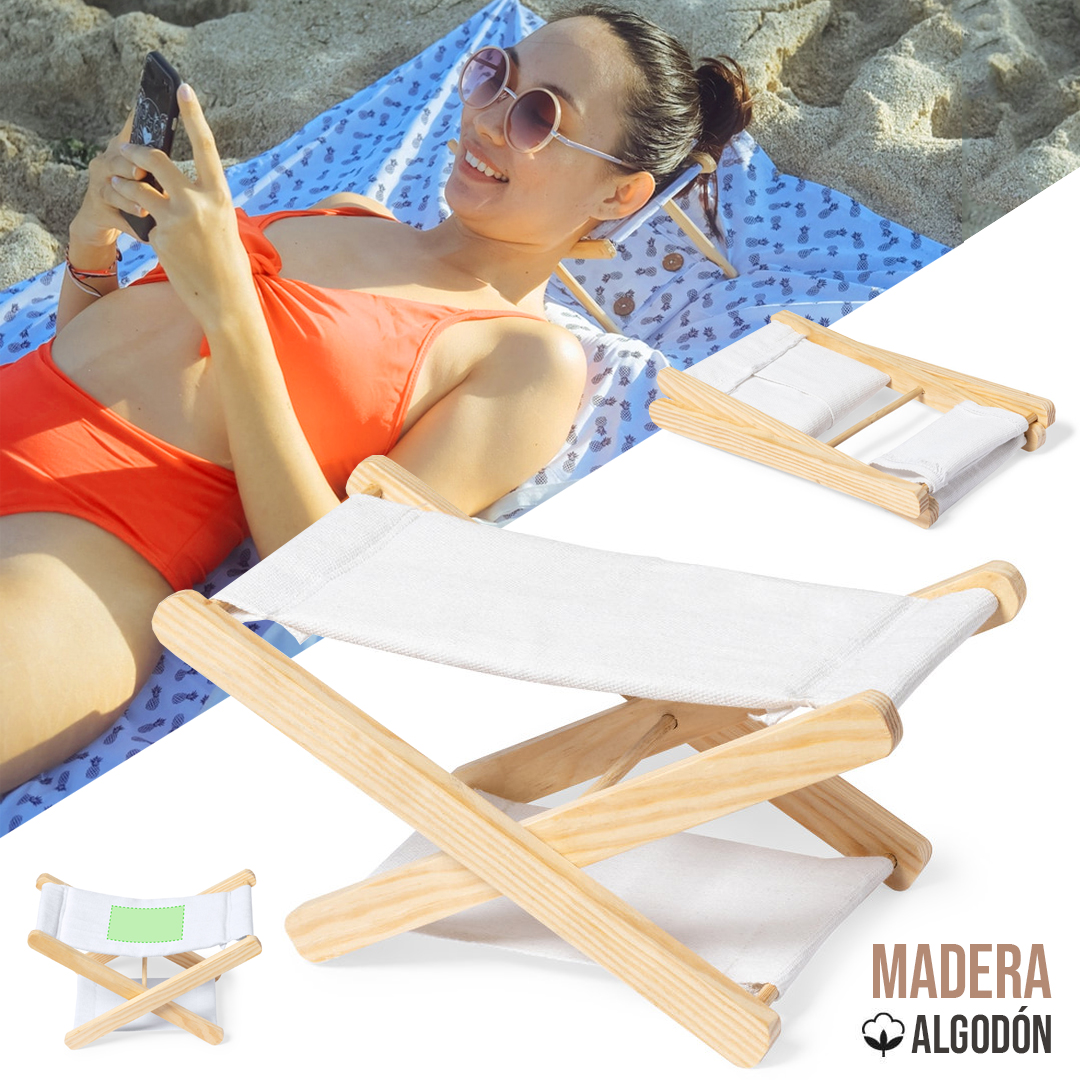 Original reposacabezas plegable, con estructura fabricada en madera y tela en 100% algodón de acabado natural. Plegable
