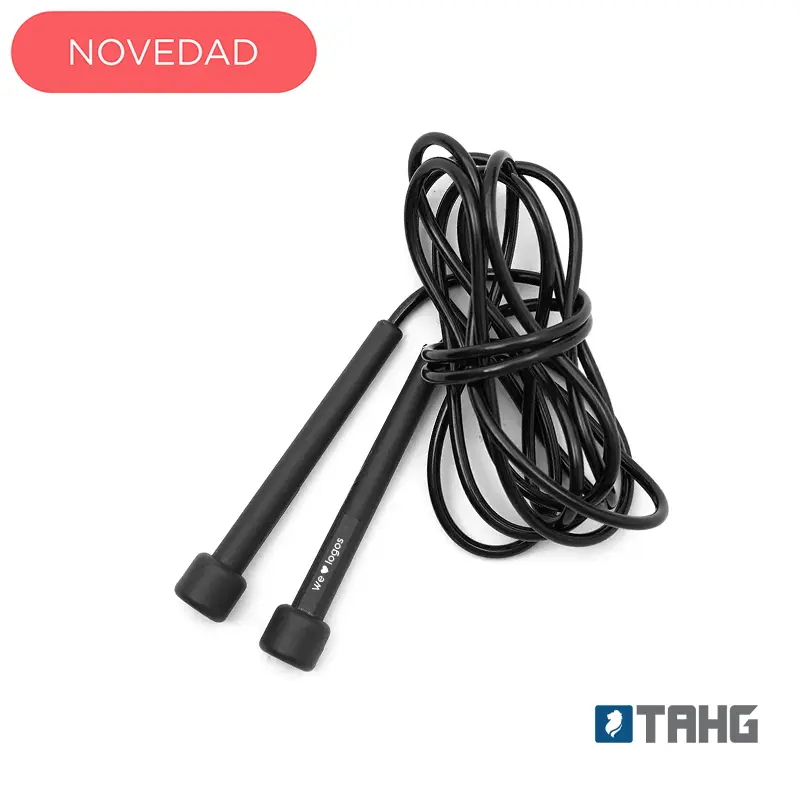 Soga de saltar fabricada en PVC (cuerda) y PP (agarre). Su largo de 2,6 metros se adapta a diferentes estaturas y niveles de entrenamiento.