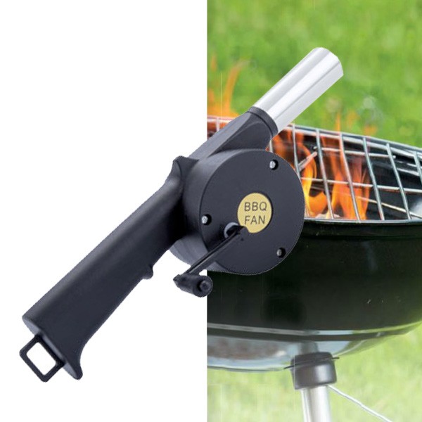 Soplador para avivar el fuego con ingenioso mecanismo de soplado mediante manivela.