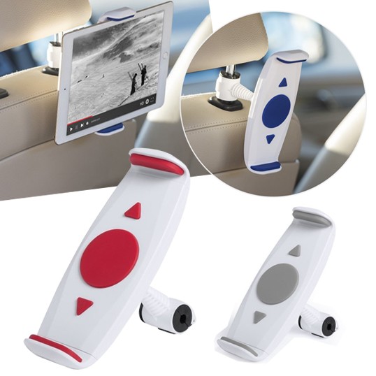 Original soporte para dispositivos móviles de hasta 10 pulgadas para acople a la barra del cabecero del coche. En variada gama de colores, giratorio 360º y con gomas anti deslizantes de alta sujeción. Ajustable