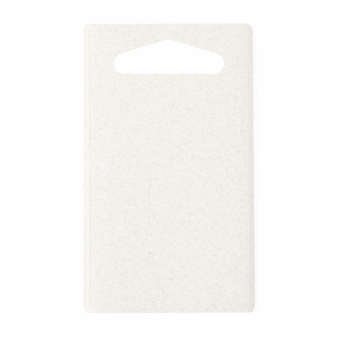 Tabla de cocina para cortar fabricada en PP. Con asa para un firme agarre, fácil de limpiar y guardar. Presentada individualmente bolsa reciclada.
