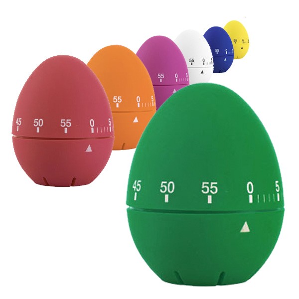 Temporizador analógico de original diseño ovalado con cuerpo en alegres y vivos colores. De hasta 60 minutos de duración y presentado en atractiva caja de diseño.