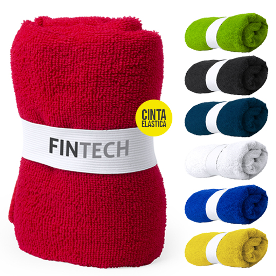 Toalla absorbente de microfibra.Tamaño 40x90 cm, en microfibra de 160gr/m2. Disponible en variada gama de colores, con cinta elástica en color blanco para marcaje. *Para pedidos con impresión, se debe incrementar el coste del marcaje + 0,20 / unidad en concepto manipulación especial*