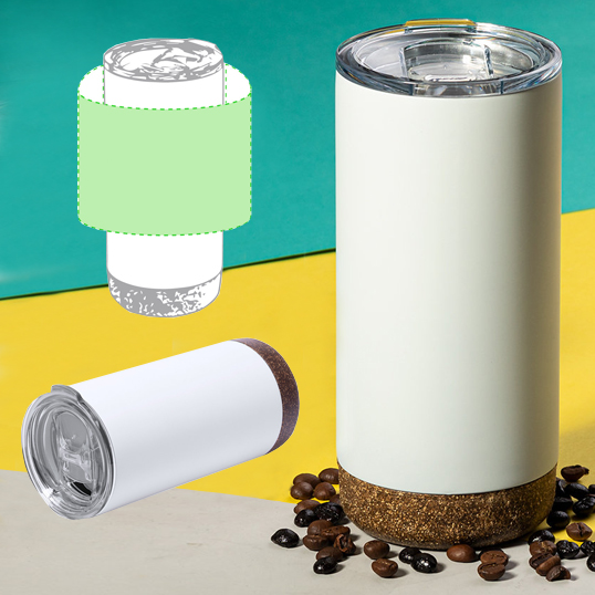 Vaso en 500 ml de capacidad, de línea nature en combinación de base en corcho natural con cuerpo en acero inox de acabado blanco. Con doble cobertura para mejor y mas duradera conservación de la temperatura y original tapón dosificador transparente. Presentado en atractiva caja de diseño. 500 ml